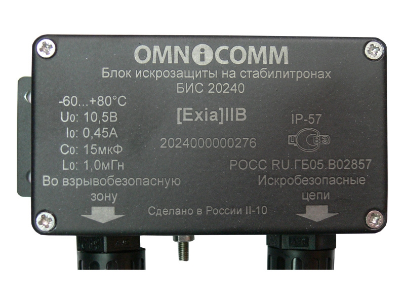 Блок іскрозахисту БИС 20240 призначений для спільного встановлення з датчиками рівня пального LLS 20230 для забезпечення вимог вибухобезпеки. Застосовується на всих вибухонебезпечних об'єктах: автоцистернах, паливозаправниках, стаціонарних вибухонебезпечних об'єктах.